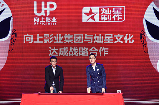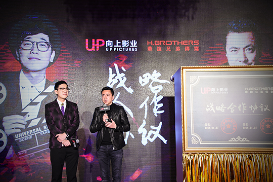 作为拥有《鬼吹灯之牧野诡事》、《死亡循环》等超级IP版权的向上影业,与华谊兄弟传媒签署战略合作协议,双方将拿出最优质的项目和资源互利互惠打造更多精品。在与华谊兄弟签署战略合作协议之后,向上影业与华谊兄弟联合出品了电影《纽约纽约》、此前联合出品的电影《老炮儿》总票房更是突破9亿,达成票房与口碑双丰收的佳绩。此外,华谊兄弟联合出品的超级季播剧《鬼吹灯之牧野诡事》也将开拍。