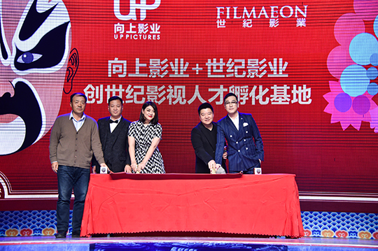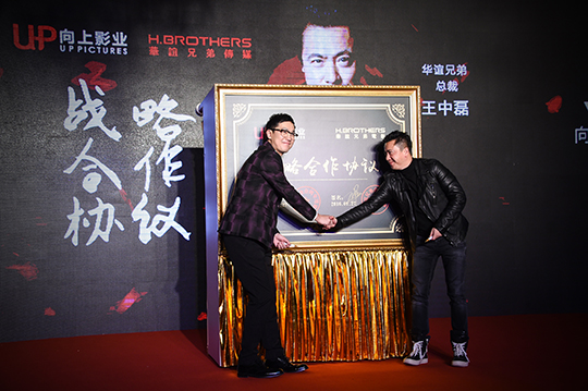 (向上影业创始人) 肖飞及(华谊兄弟传媒集团总裁) 王中磊签订战略合作协议